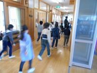 不審者が1階会議室に侵入したことを想定し、秘密の校内放送お知らせで知らせました。不審者のいる場所を避けて、静かに素早く避難することを確認虫眼鏡しました。