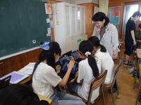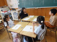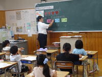 本校では、学校課題研究として、表現力を高める指導法の研究に取り組んでいます。授業を受け持つ教職員全員が、提案授業を行い、互いに参観し合い、放課後に授業研究会を行っています。
