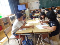 2年生が、国語で「どうぶつ園のじゅうい」を教材にして学んでいます。ここまでは、教材文を読んで、筆者がいつ、どんな仕事をしているのか、どんな工夫をしているのかを読み取ってきました。また、読んだことをもとに自分の感想を書き、自分の体験と結び付けた考えも書きました。