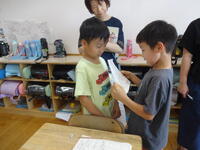 また、空気でっぽうで玉をとばしながら、押したときの手ごたえや玉のとび方について様々な気付きを得ています。