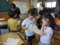 4年生が理科で空気について学習を始めました。ビニル袋やバランスボールに閉じ込めた空気の手ごたえや押したときの様子を五感を通して体感しました。