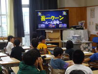 今日は、もともとなかよし班で一緒に遊ぶ日だったので、教室に集まった子どもたちが動画の説明を見て、イベントのルールを知りました。