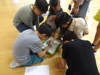今日の活動は、海浜オリエンテーリングでした。班ごとに地図を見ながら、チェックポイントを回りました。とても広いので、道を間違えてしまってもはげましあって最後までがんばりました。