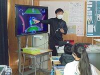 3時間目、5年生笑うのみなさんがアリアン先生キラキラとの外国語星の授業で、一人ずつ発表お知らせをしていました。今日の学習鉛筆のGOALキラキラは「Let`s tell the prefectures you want to go to.」で、自分が選んだ県!とその理由について、大型テレビに画像視聴覚を映しながら「I want to go to 〇〇.」や「I can see虫眼鏡(eat給食・食事・buyピース)」を使って、一生懸命にお知らせ伝えています。みんな真剣に花丸聞いています。