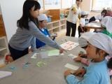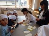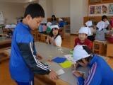 先月から始まった、「世界の遊びを学校のみんなに紹介する活動」は、11月は、1年3組を招待しました。先月に引き続き、中国の切り絵で遊びました。