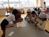 太巻は切らずにそのまま恵方(今年は南南東)を向いて丸かぶりするのですが、給食では食べやすい大きさにカットされています。