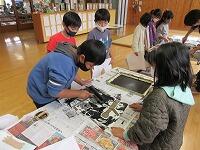 2年生の「紙版画」は、段ボールのようななみなみの紙
