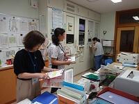 子どもたちと会話しながらうれしそうにしているボランティアさんを見ているうちに自然と読み聞かせの世界に引き込まれていきます。読み聞かせが終わったあとは、地域交流室に集まって振り返りを行いながら、ボランティアさん同士の会話が始まります。