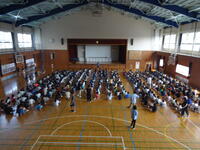 子どもたちは、放送を聴いてすばやく体育館に避難できました。落ち着いて避難行動できていたことをスクールサポーターさんからほめられました。