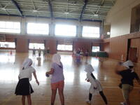 今週から来週にかけて、昼休みに体育館で体育委員会による投力向上イベントが行われています。
