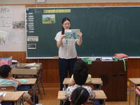栄養教諭の先生から、ニンジンやサツマイモの収穫の様子の写真を見せてもらうだけで、子どもたちの野菜への興味が高まりました。野菜には「色のこい野菜」「色のうすい野菜」「いものなかま」があることを聴くと、自分の知っている野菜はどの仲間なのか知りたそうでした。