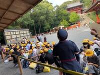 楽しい班別行動を終えた子どもたちが、時間を守って、八幡宮に集合しました。先生から、楽しかったですか?と訊かれると、みんな笑顔で返事をしていました。
