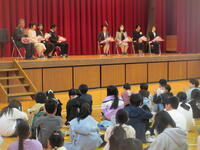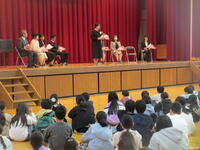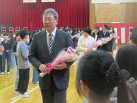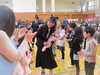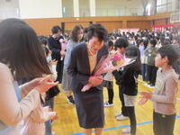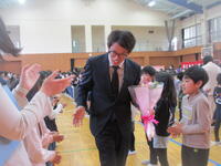 次に、代表児童から花束をお贈りした後、お一人お一人よりこれまでの思い出や子どもたちへの温かいメッセージをいただきました。これまで子どもたちを温かく見守ってくださった先生方へ、感謝の気持ちを込めて、子どもたちはしっかりと話を聞き、一人一人が思いを巡らせながら参加することができました。