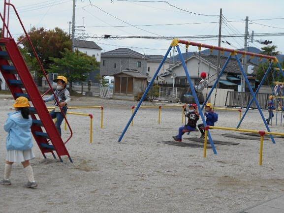 外遊びも忘れません。鬼ごっこをしたり、すべり台やブランコで遊んだり、短い時間ですが思い切り体を動かしています。もちろん、終わった後の手洗いも忘れません。