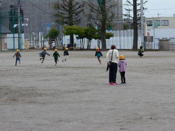 外遊びも忘れません。鬼ごっこをしたり、すべり台やブランコで遊んだり、短い時間ですが思い切り体を動かしています。もちろん、終わった後の手洗いも忘れません。