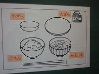 』でした。今日のテーマは、『正しい食器の並べ方』です。給食の配膳が整ったら、みんなで伊東先生のお話を聞きました。