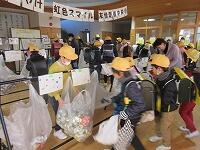 が担当しています 。だんだん、回収袋がいっぱいになってきました 。今日の分の重さを