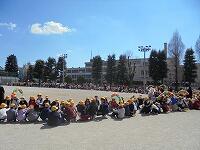 今日は、体育館での卒業式練習は行わず、校庭で卒業生を見送るときの隊形を確認しました。
