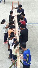 サマースクール1 2日目の朝です。恒例となった流しそうめん。PTA役員が竹取ツアーから準備をし、校庭は壮大な流しそうめん会場となりました。子どもたちは歓声をあげながら朝食中です。サマースクールも間もなく閉校式です!