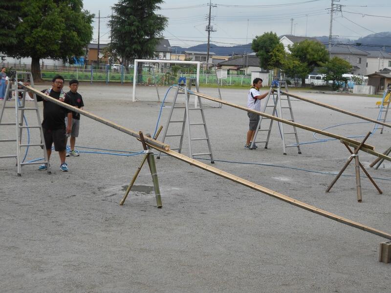 ものつくりⅠ:竹の水鉄砲、実際に発射、よく飛んだかな?