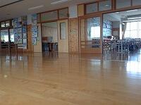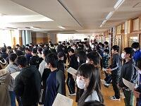 オープンスペースで、いつもと向きを変えて並ぶ6年生。