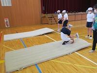 5年生は体育で「マット運動急ぎ」に取り組んでいます。5の1のみなさんは、体育館いっぱいに広く練習用マットを配置して、いろいろな技!の練習汗・焦るを行っていました。5カ所にっこりある「技別・練習コーナー星」をグループごとに回って、工夫されたマットで練習します。