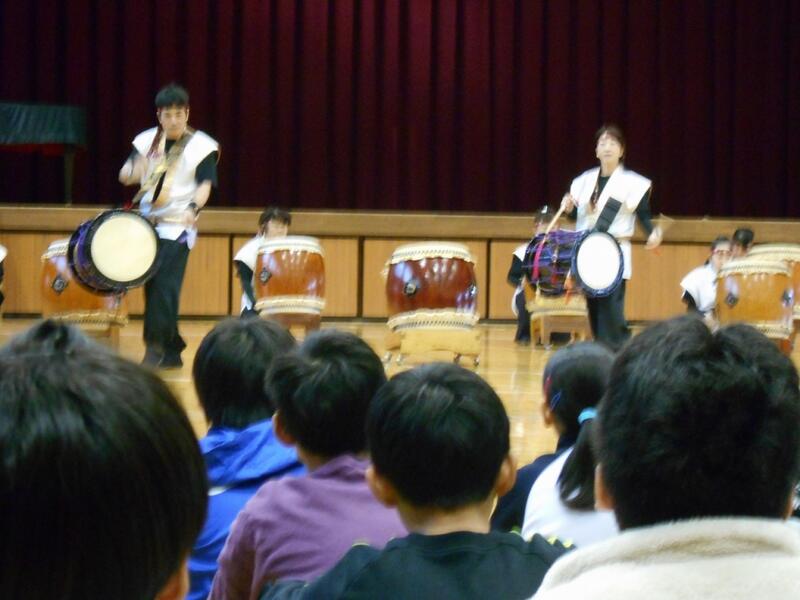 今日の朝の活動は音楽集会でした。これまでの音楽集会では、各学年の発表を行ってきましたが、12月の音楽集会はいつもと違います。今年も、鼓舞技会の皆さんにお世話になり、和太鼓の演奏を聞きました。