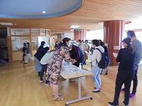 「だれも知らない」、「カエサル君とカレンダー」、「ぼくがラーメン食べているとき」など、学年によってプログラム星変えて、絵本の読み聞かせ笑うや情景が目に浮かぶような民話語りお知らせを聞かせてくださいました。