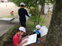 実際に校庭に出て、気に入った木をじっくり観察して下絵を描きました。