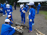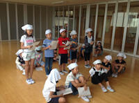活動班長が昼休みに集まって、「出発式」や「入所式」などの司会を練習しました。