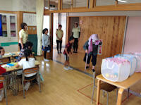手の空いた5年生だけで、6年生の教室を掃く姿も見られました。