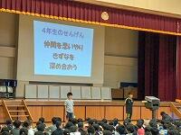 体育館での児童集会は、「いじめ」をなくすために大切なことを考えました。