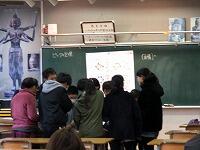 「中学校の先輩に聞いてみたいこと」というテーマで「白い黒板」をつくってみました。