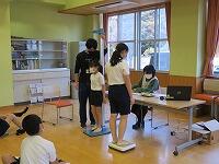 今日は、4・5・6年生(上学年)のみなさんの身体計測鉛筆がありました。日惜ホール星で、学級ごとに身長!と体重!を計測しました。体育着の上下に着替えて、静かに花丸集合し計測することができました。