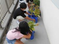 その隣、3年生の花壇では今日ぐんぐんと伸びていたひまわり