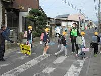 今回は、入学した1年生星が新たに登校班グループに加わった、12日・13日に実施しました。通学路のうち、大きな交差点車や横断歩道がある、栃高東交差点、昭和堂パン店前信号、幸来橋、錦町五差路、、、