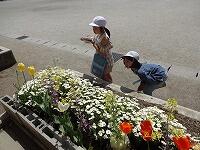 4月は、校庭で春の生き物を探しました。サクラの木やチューリップやパンジーなどの花をよく観察していました。