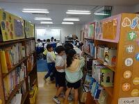 下学年の子どもたちは、お互いに自分の好きな本をすすめたり、本選びのアドバイスをしたりしていました。