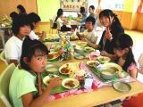 などと話をしながら各グループ、楽しく給食を食べていました。