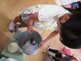 ちょこっと食通信を聞いた子どもたち、もりもりモロヘイヤスープを食べていました。