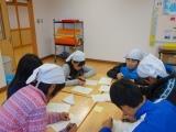 中国の切り絵はなかなか難しいので、委員会のメンバー全員で練習をして、臨みました。練習の様子です。