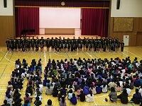 2校時は、体育館で全校集会。合唱部の発表からスタートしました。すてきな歌声に癒やされました。