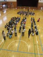 今朝の朝の活動は『音楽集会』。ちょっと肌寒いけれど、体育館で、1・3年生のみなさんが元気に学年発表を行いました。