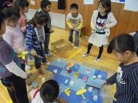 1年生を招待して、2年生が手作りのおもちゃで1年生と遊びました。おもちゃだけでなく、コースや景品も工夫して1年生に喜んでもらうことができました。