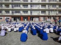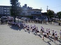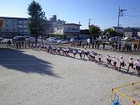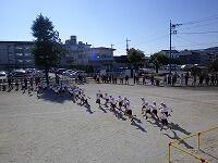 後半は、1・2・3年生の大会です。3年生の立派な司会で進行した開会式。1年生女子からスタートです。1・2年生は外周りを1周、650mです。