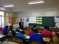 そんな天候の中、今日は、栃木西中学校の津久井先生が、西中ブロック小中一貫教育推進事業の『交流授業』に来てくださいました。2・3・4校時と、6年生の各クラスに入っていただき、まもなく中学生となる予定の児童たちの『算数』で、中学校の先生による授業をしていただきました。