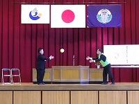 先週に引き続き、今週も体育館を教室にして、1年生の生活科「空気で遊ぼう」