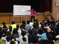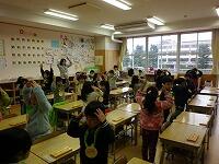 その間子どもたちは、1年生の教室で「一日入学!」。楽しく歌を歌ったり、お話・紙芝居を聴いたり、お絵かきをしたりしました。