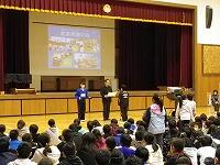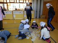 給食週間のある1月は、給食委員会の取組がたくさん予定されています。今日の昼休みは、2階のオープンスペースで、「食育カルタ」のミニ集会がありました。