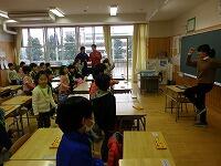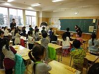 校長先生・伊東栄養教諭の説明のあと、教室で行われている『食育』の授業、給食の配膳の様子も参観していただきました。
